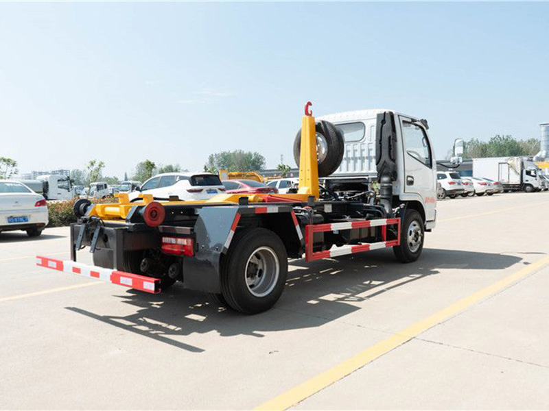 該車可將地下垃圾箱內(nèi)的垃圾及垃圾箱一同拉車上運走同時可自卸,降低了工人的勞動強度。該垃圾車的收運方式是目前世界上廣泛采用的垃圾收運方式,可以實現(xiàn)一車多箱,大大降低了配備成本和空間等等;其專用裝置的功能均以汽車發(fā)動機為動力,通過液壓機構(gòu)手動或電控來實現(xiàn)。車輛的箱體采用優(yōu)質(zhì)炭鋼板全密封焊接結(jié)構(gòu),具有強度高、重量輕、不產(chǎn)生二次污染等優(yōu)點。
